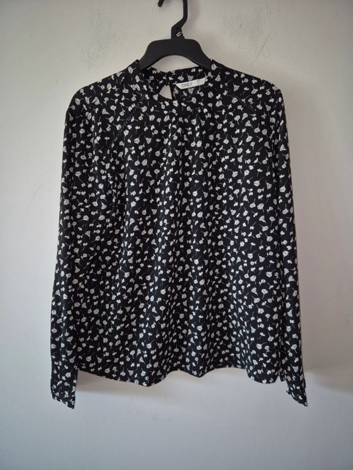 Blouse Only en très bon etat. 2 boutons dans le dos. Bouton de rechange. 97% polyester et 3% elasthane. Taille L. #femme40celine14