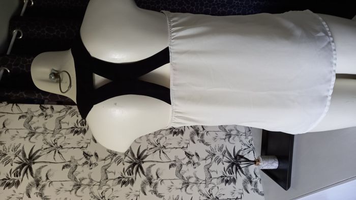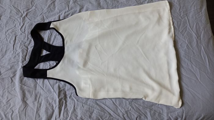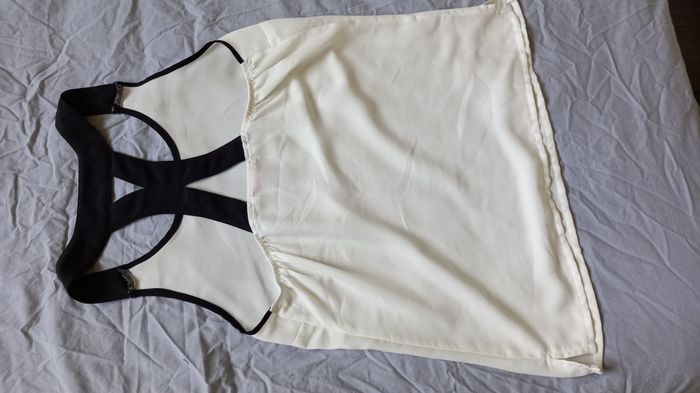 Haut Camaieu Voile blanc - doublé Epaules dénudées - Bretelles noires Taille 38 #T38_imoddeco