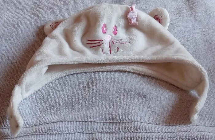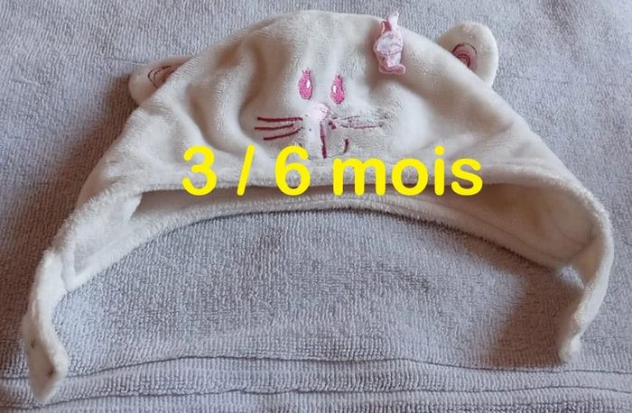 Bonnet crème motif souris rose intérieur polaire Taille 3 / 6 mois - photo numéro 1