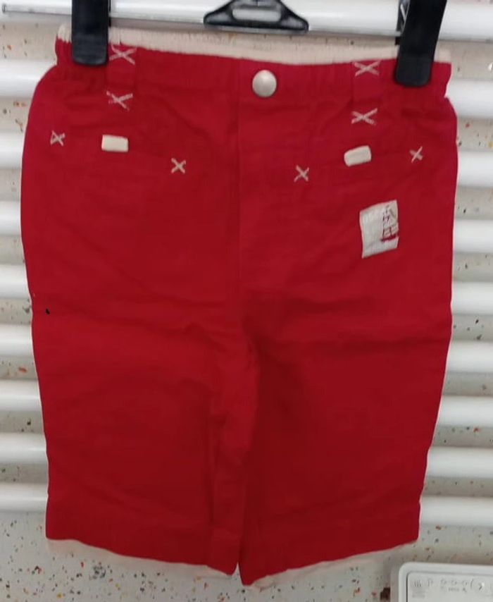 Pantalon taille élastique rouge beige In Extenso Taille 6 mois - photo numéro 2
