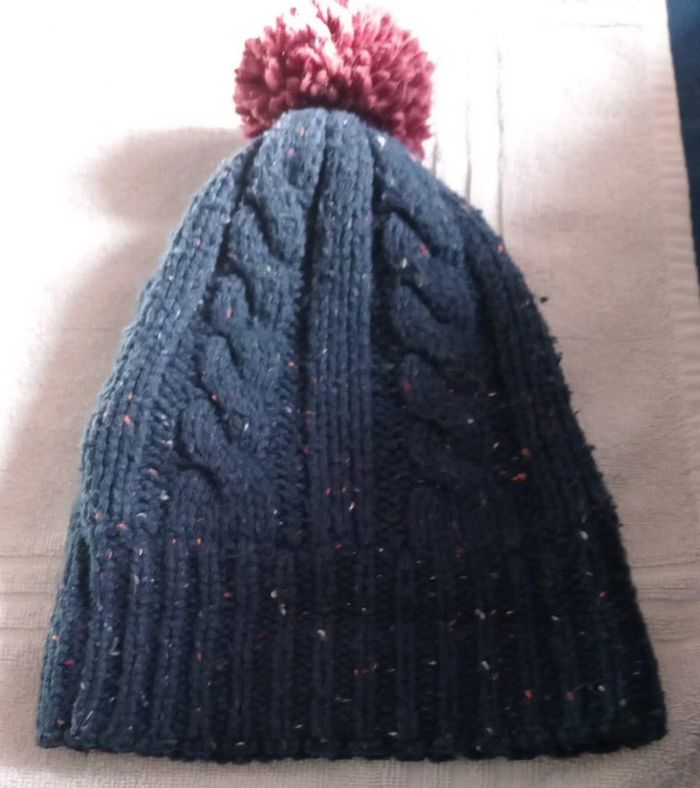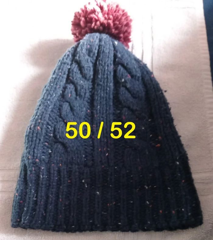 Bonnet bleu marine avec pompon bordeaux intérieur polaire Okaïdi Taille 50 / 52