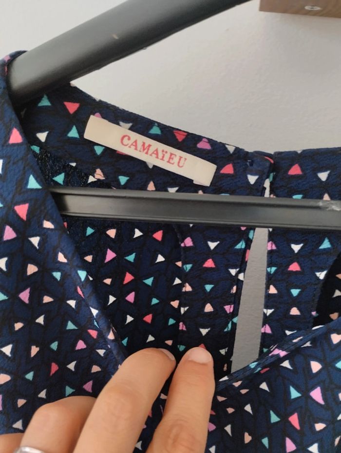 Blouse manches courtes, bouton au dos. Camaïeu. Très bon état. #juani198521_femme_tailles