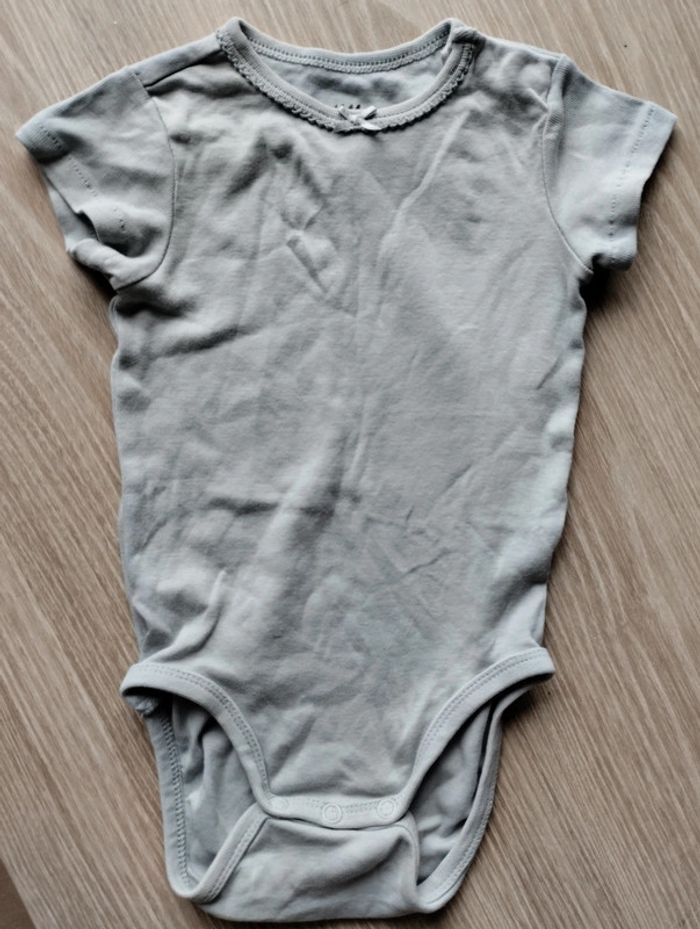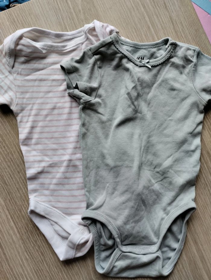Lot 2 bodies manches courtes. Taille 9-12 mois, 80 cm. Marques : Primark et H&M. Le vert a deux boutons à l'épaule. Très bon état. #juani198521_bebefille_12mois