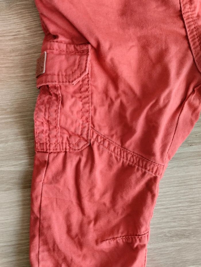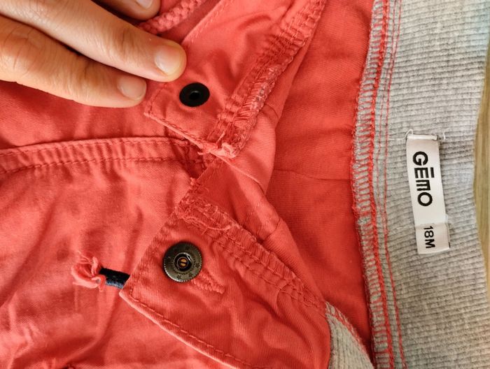Pantalon rouge souple, bouton à pression et cordon. Taille 18 mois. Gémo. Bon état, car couleur des genoux un peu usée. #juani198521_bebegarçon_18mois