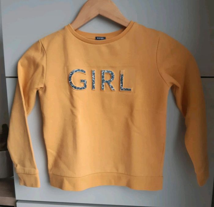 Sweat fille Kiabi Moutarde et léopard Petit défaut sur le L voir photo Taille8ans sur l’étiquette mais correspond plus à un 6 ans