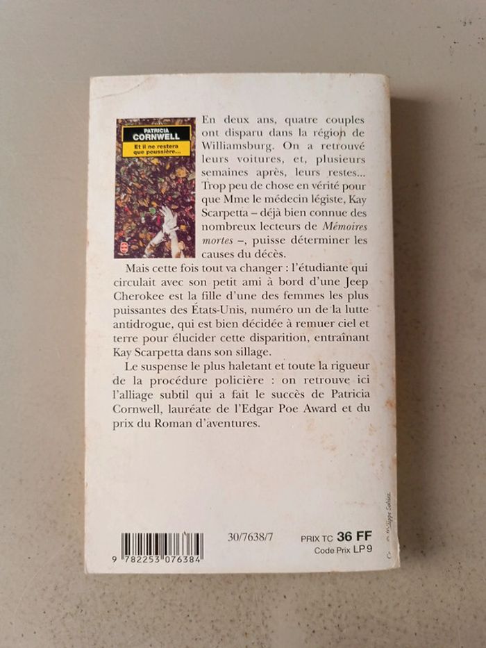 Patricia Cornwell et il ne restera que poussière Voici le lien pour voir tous mes livres : #romain75015_Livres. Envoi rapide et soigné bien protégé pour le transport. N'hésitez pas à faire un lot pour avoir des réductions et mutualiser les frais de port.