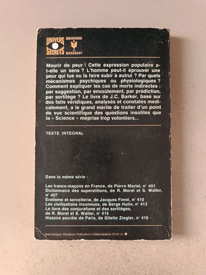 J.c. Barker la peur et la mort peut-on vraiment mourir de peur ? Voici le lien pour voir tous mes livres : #romain75015_Livres et #romain75015_Santé. Envoi rapide et soigné bien protégé pour le transport. N'hésitez pas à faire un lot pour avoir des réductions et mutualiser les frais de port.
