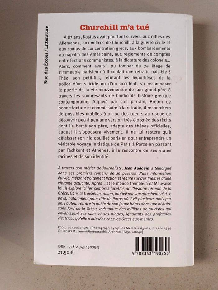 Jean Audouin Churchill m'a tué une enquête à travers l'indicible histoire grec contemporaine. Prix neuf 21,5 €. Voici le lien pour voir tous mes livres : #romain75015_Livres. Envoi rapide et soigné bien protégé pour le transport. N'hésitez pas à faire un lot pour avoir des réductions et mutualiser les frais de port.