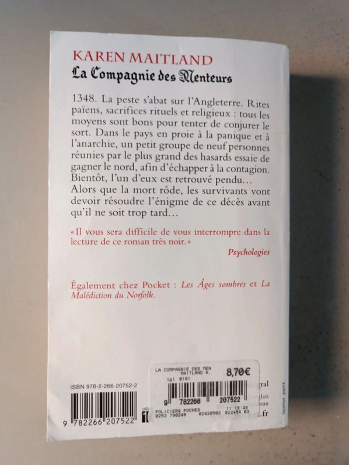 Karen Maitland La compagnie des menteurs. Et le meilleur thriller historique pour le New York Times. Voici le lien pour voir tous mes livres : #romain75015_Livres. Envoi rapide et soigné bien protégé pour le transport.