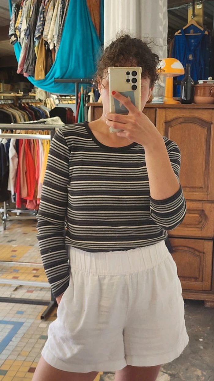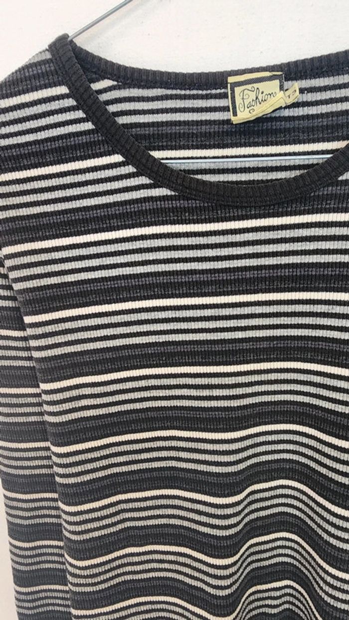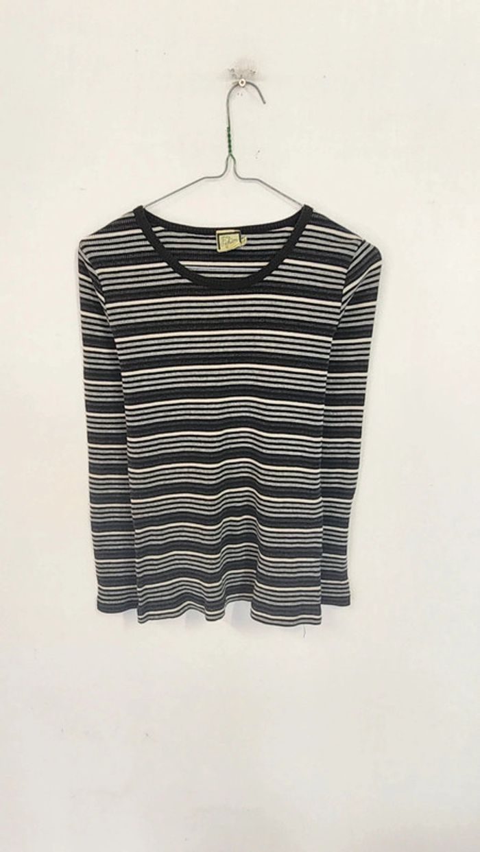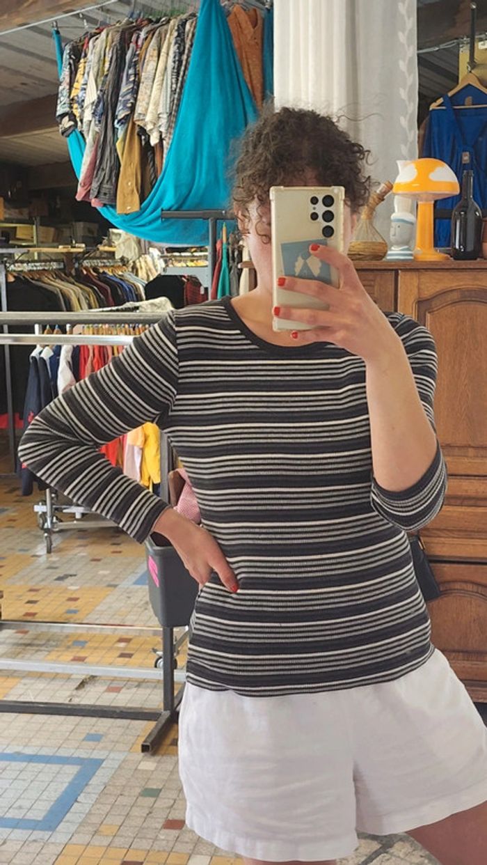 🌼 Remise sur les lots 🌼 -5% pour 2 articles -10% pour 3 articles -15% pour 4 articles -20% pour 5 articles et + www.instagram.com/kozhaevintage 🫶 Un beau petit basique taille 38. A porter aussi plus loose à partir du 34. Maille cotelée coton, extensible, rayures dans le sens de la marinière