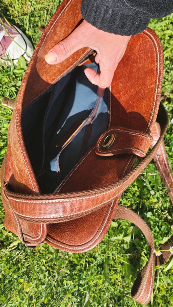 Superbe sac à main vintage en cuir chocolat - photo numéro 5