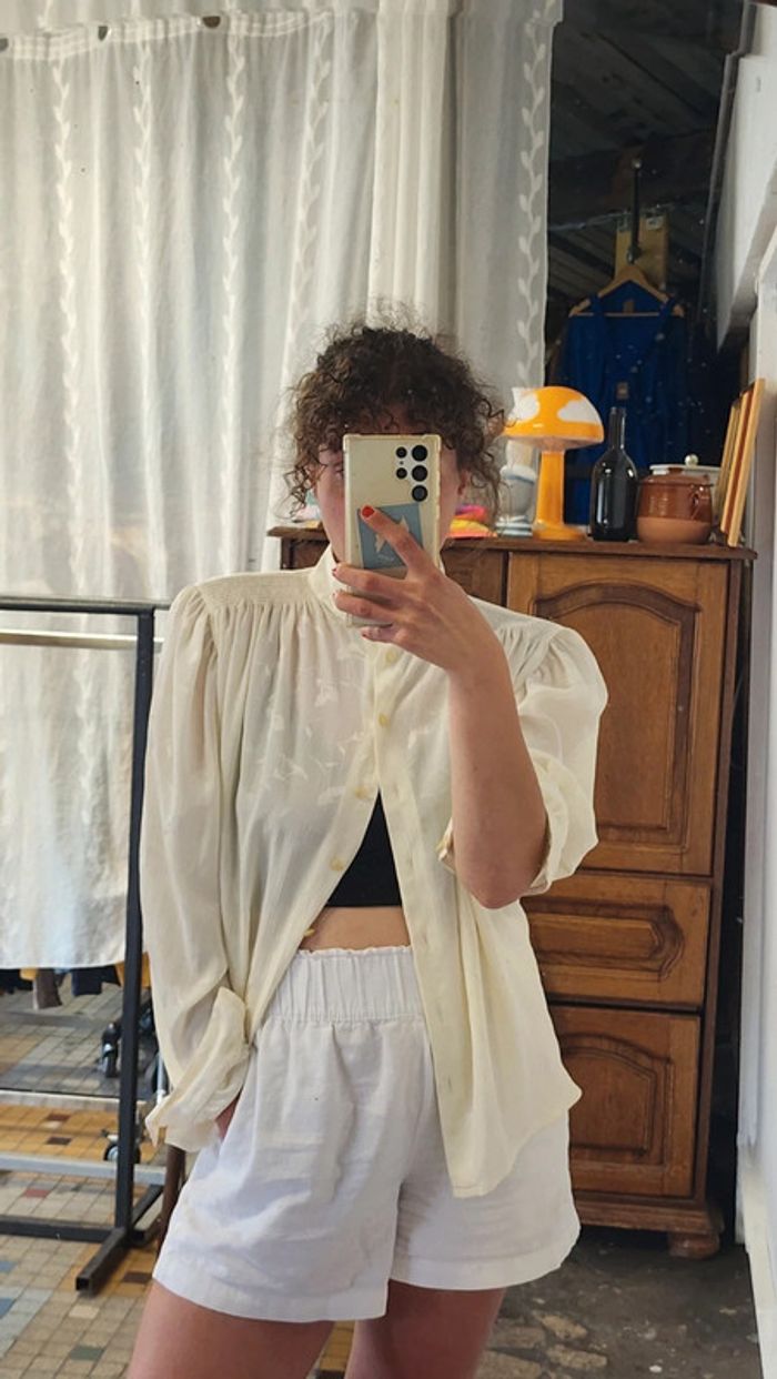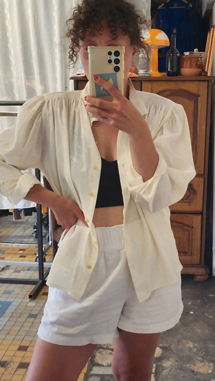 🌼 Remise sur les lots 🌼 -5% pour 2 articles -10% pour 3 articles -15% pour 4 articles -20% pour 5 articles et + www.instagram.com/kozhaevintage 🫶 Superbe blouse fluide et légère satinée, epaules froncées, structure incroyable Fabrication française Taille 40 à porter aussi oversize
