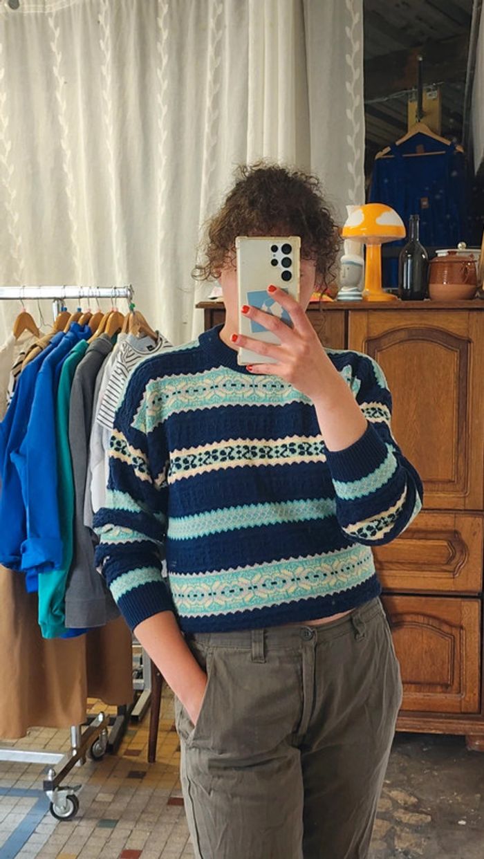 Joli pull en maille coton melangé vintage 2000's - photo numéro 1