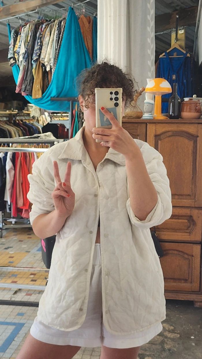 🌼 Remise sur les lots 🌼 -5% pour 2 articles -10% pour 3 articles -15% pour 4 articles -20% pour 5 articles et + www.instagram.com/kozhaevintage 🫶 Jolie veste col velours côtelé. Reversible 2 en 1 Un côté PVC imperméable et revers molletonné matelassée Taille 42 femme a porter aussi oversize
