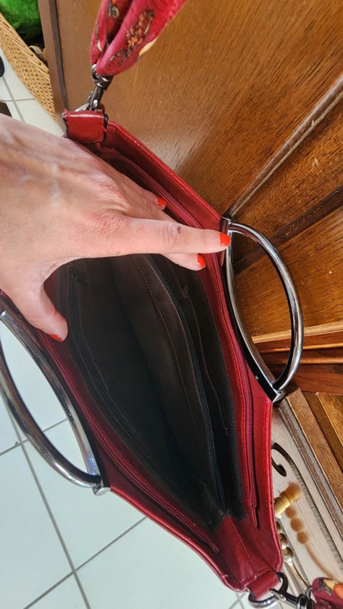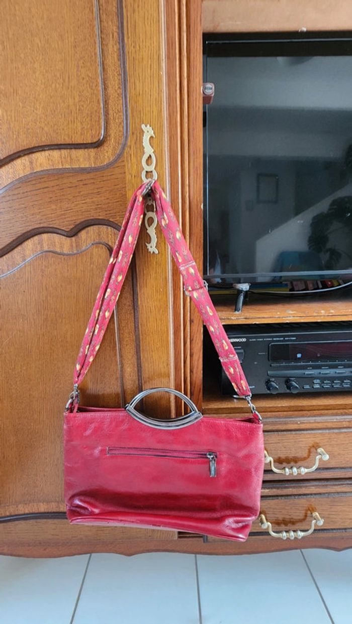 Joli sac a main vintage années 90's en cuir rouge, anse métal - photo numéro 3