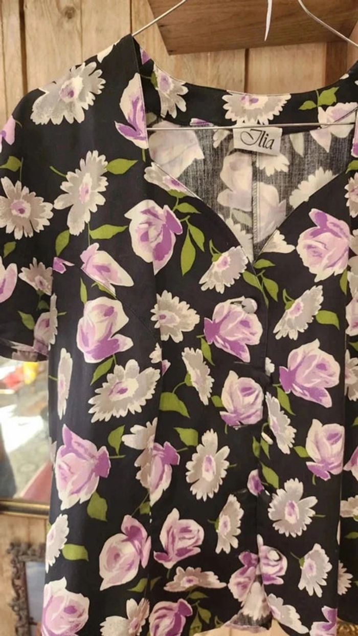 Adorable blouse vintage fleurie lilas et mauve en 100% coton - photo numéro 2