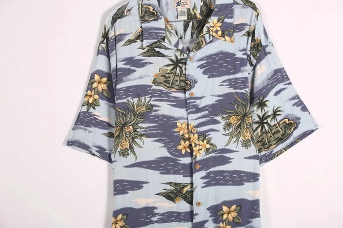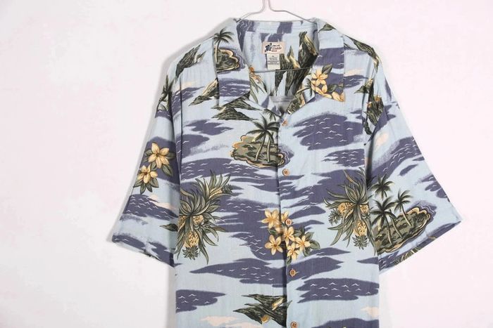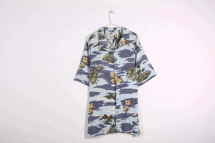 🌼 Remise sur les lots 🌼 -5% pour 2 articles -10% pour 3 articles -15% pour 4 articles -20% pour 5 articles et + www.instagram.com/kozhaevintage 🫶 Jolie chemise hawaïenne imprimée fleurs d'hibiscus, poche plate raccord au motif. Taille 44 à 50 (oversize à ajusté) Indiqué taille XL 🌈 Caractéristiques : Coloris : bleu ciel Matière : coton et rayonne Motif : fleurs des îles Epoque : #Vintage des années 90's Coupe large. À manches courtes. Condition : très bel état Mesures à plat : Epaules : 57 cm Poitrine : 66 cm Longueur totale : 87 cm Réf : 240179