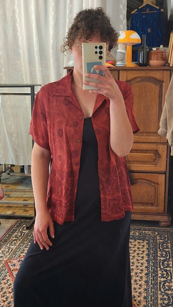 Jolie chemise rouge bordeaux fluide en mousseline vintage
