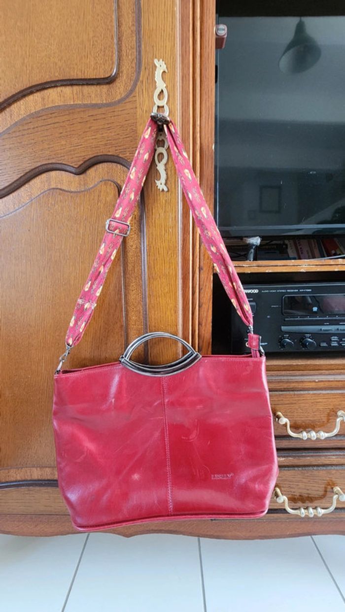 🌼 Remise sur les lots 🌼 -5% pour 2 articles -10% pour 3 articles -15% pour 4 articles -20% pour 5 articles et + www.instagram.com/kozhaevintage 🫶 Sac à main en cuir lumineux rouge. Anse en métal et bandoulière en soie réglable Piece unique