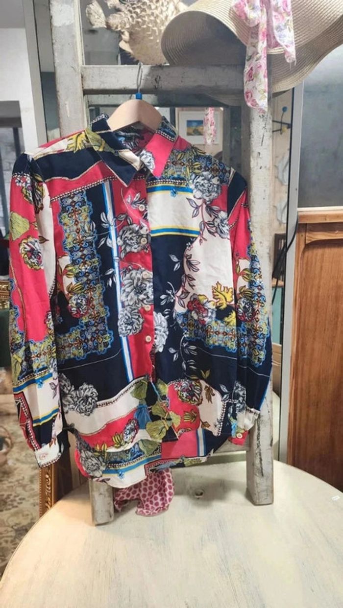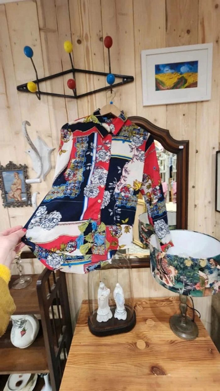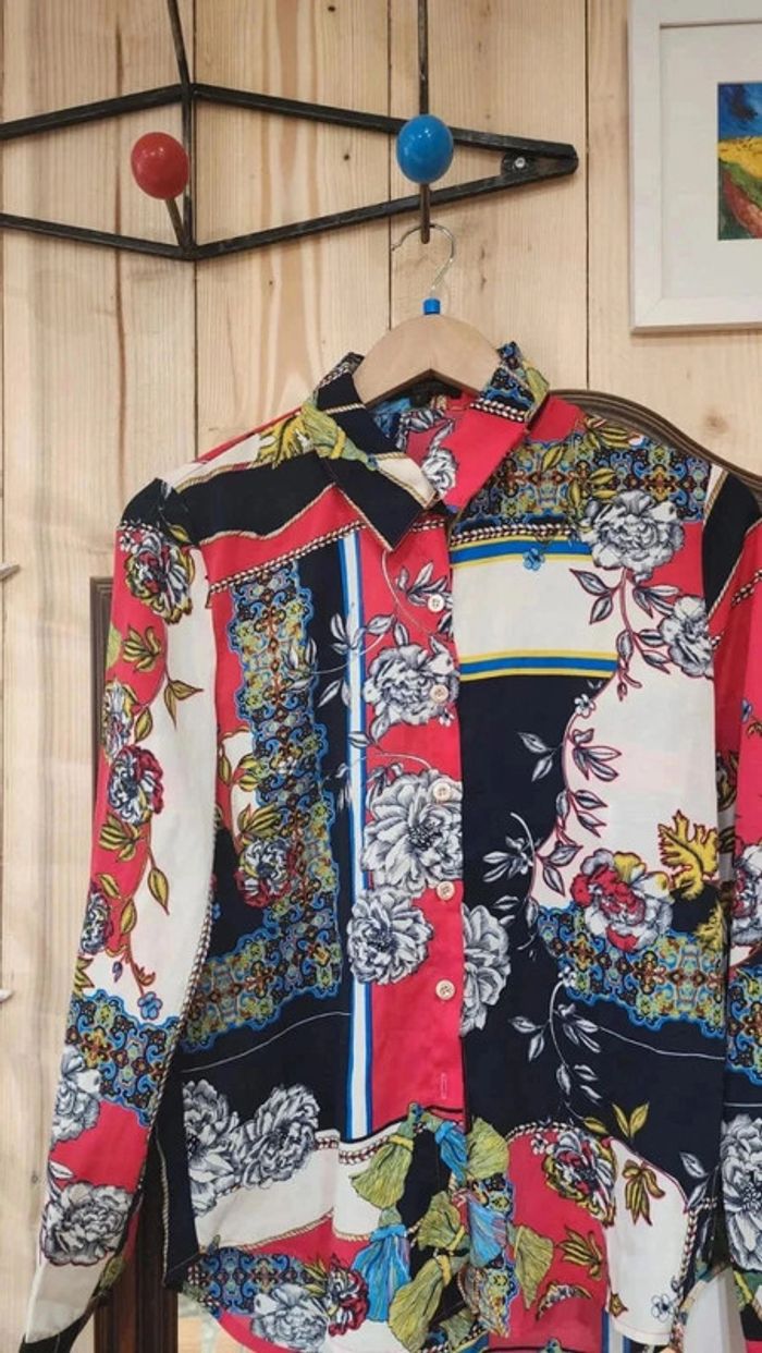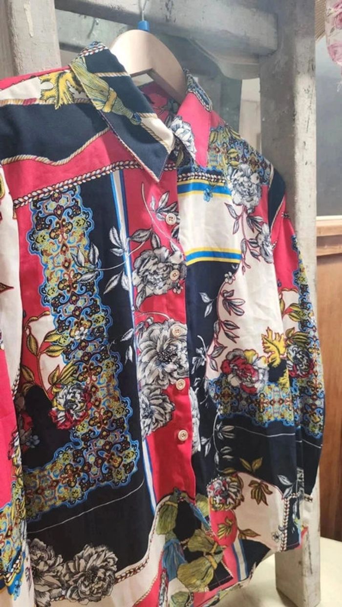 Superbe chemisier vintage fluide avec motifs fleurs et cachemire - photo numéro 1