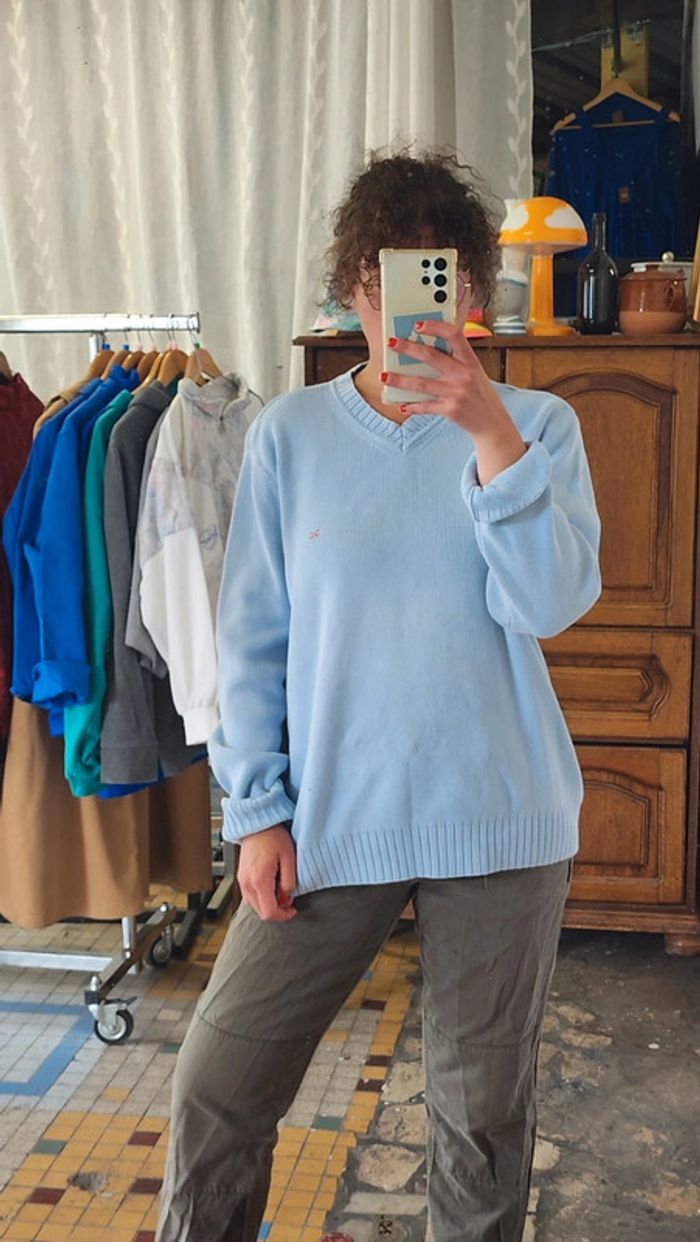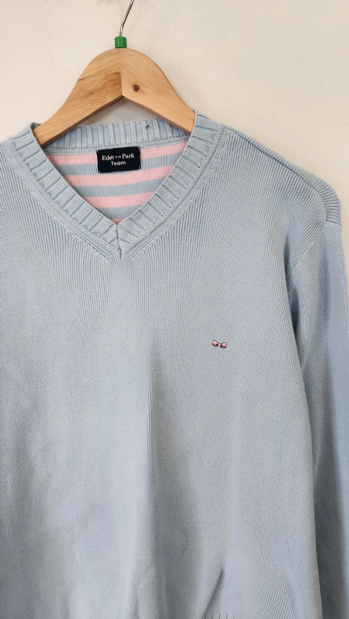 🌼 Remise sur les lots 🌼 -5% pour 2 articles -10% pour 3 articles -15% pour 4 articles -20% pour 5 articles et + www.instagram.com/kozhaevintage 🫶 Beau pull pastel éden park mixte avec son petit noeud rose Taille L homme Jusque 42 femme