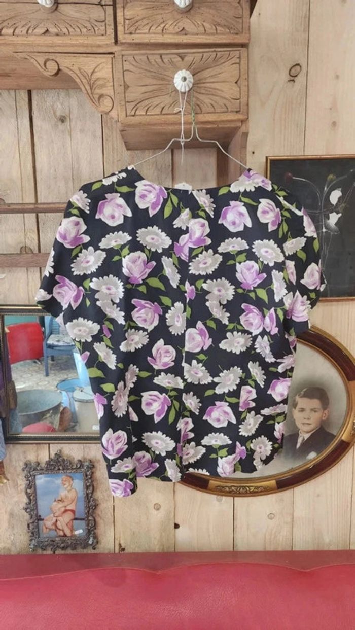 Adorable blouse vintage fleurie lilas et mauve en 100% coton - photo numéro 3