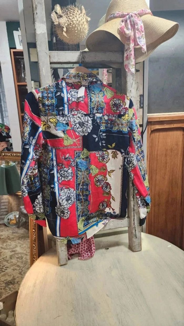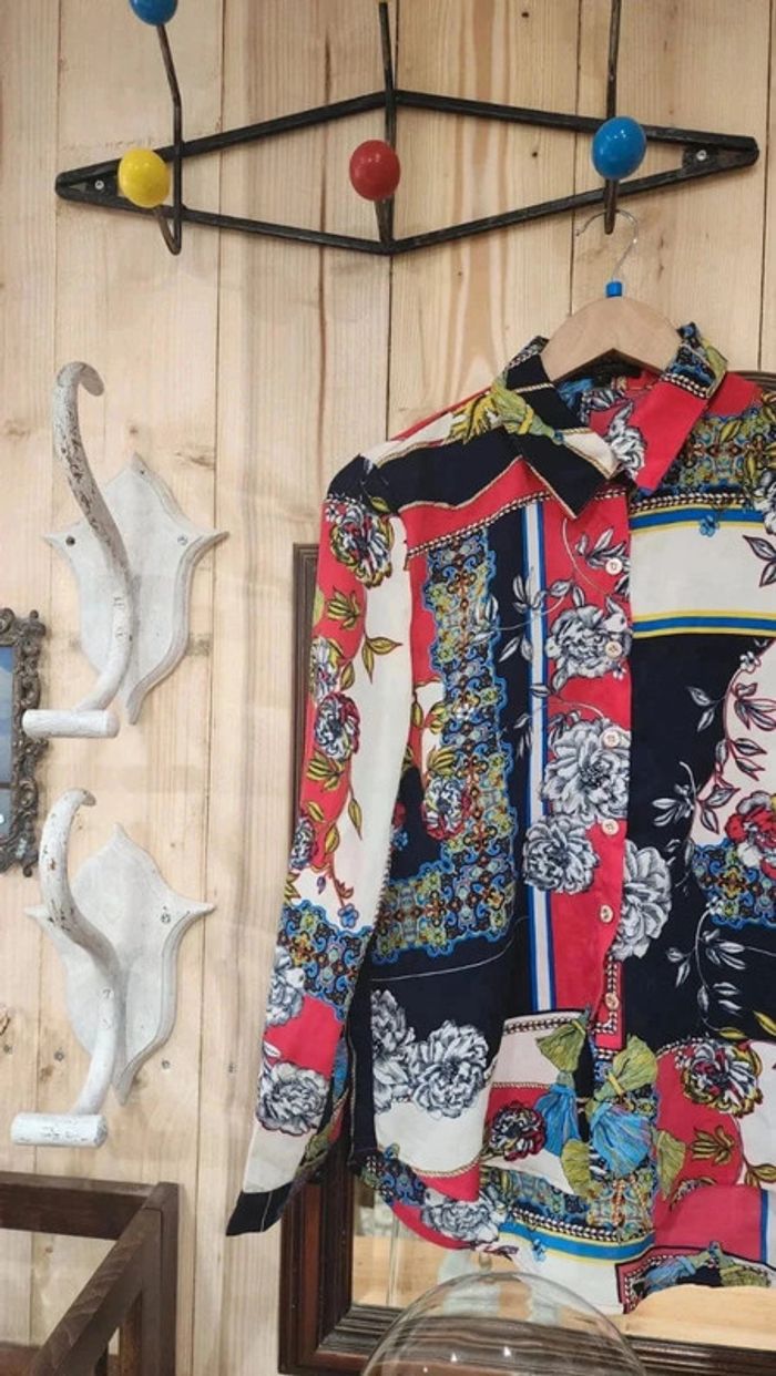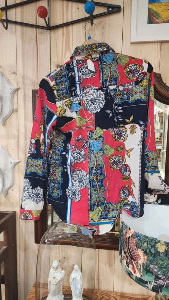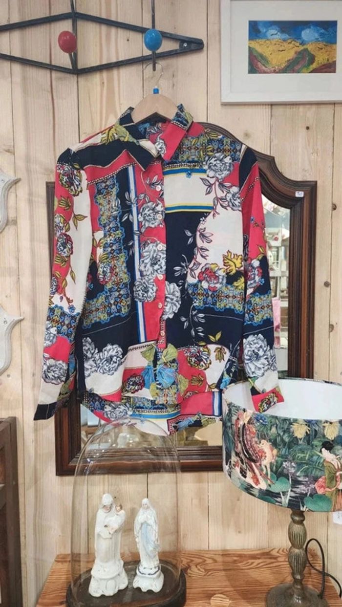 Superbe chemisier vintage fluide avec motifs fleurs et cachemire - photo numéro 1