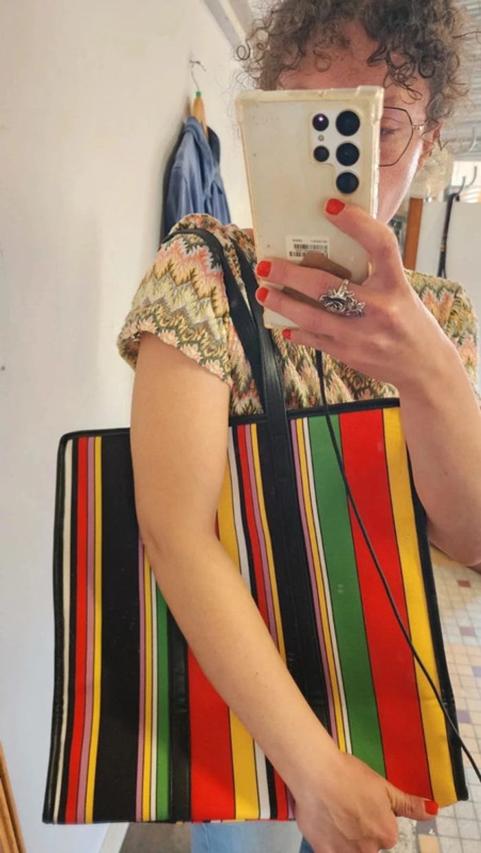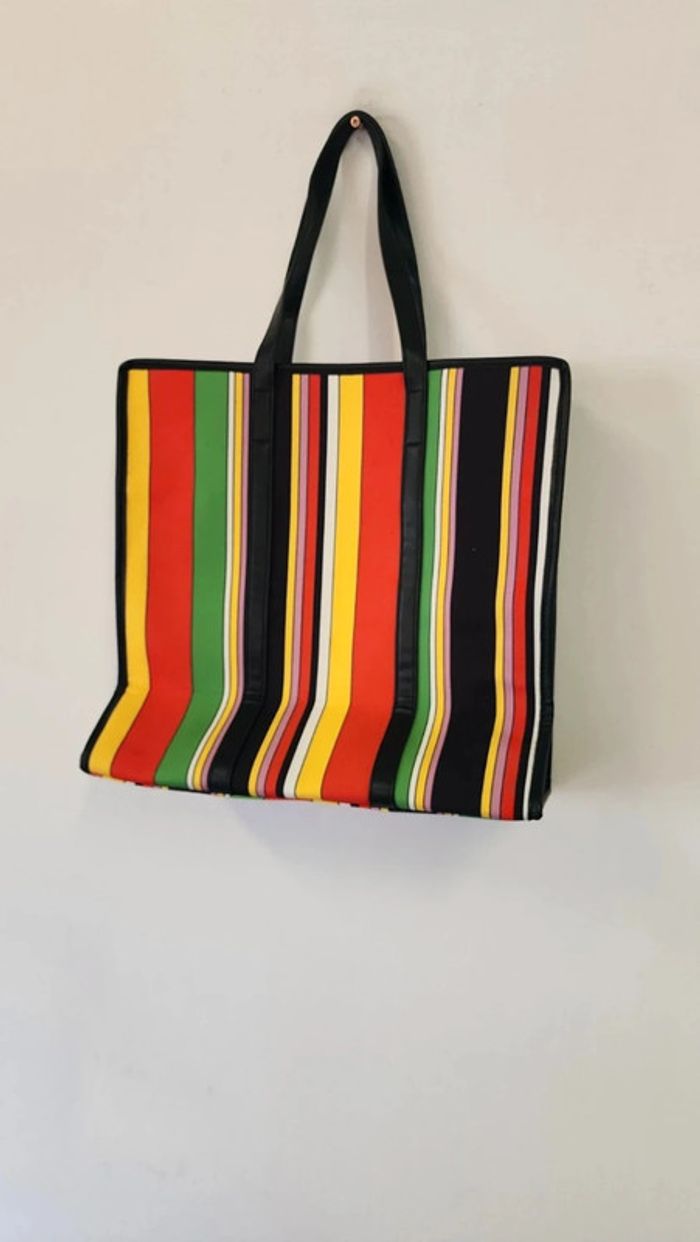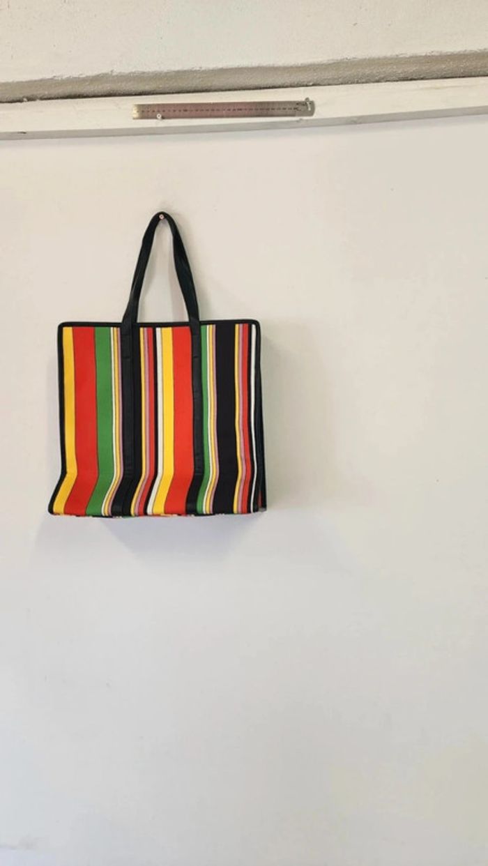 Joli sac cabas rayé en toile coton multicolore - photo numéro 5