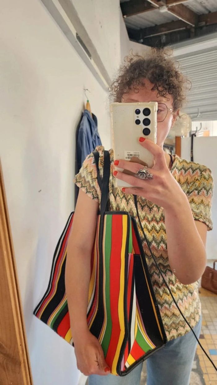 🌼 Remise sur les lots 🌼 -5% pour 2 articles -10% pour 3 articles -15% pour 4 articles -20% pour 5 articles et + www.instagram.com/kozhaevintage 🫶 Joli sac à rayures multicolores