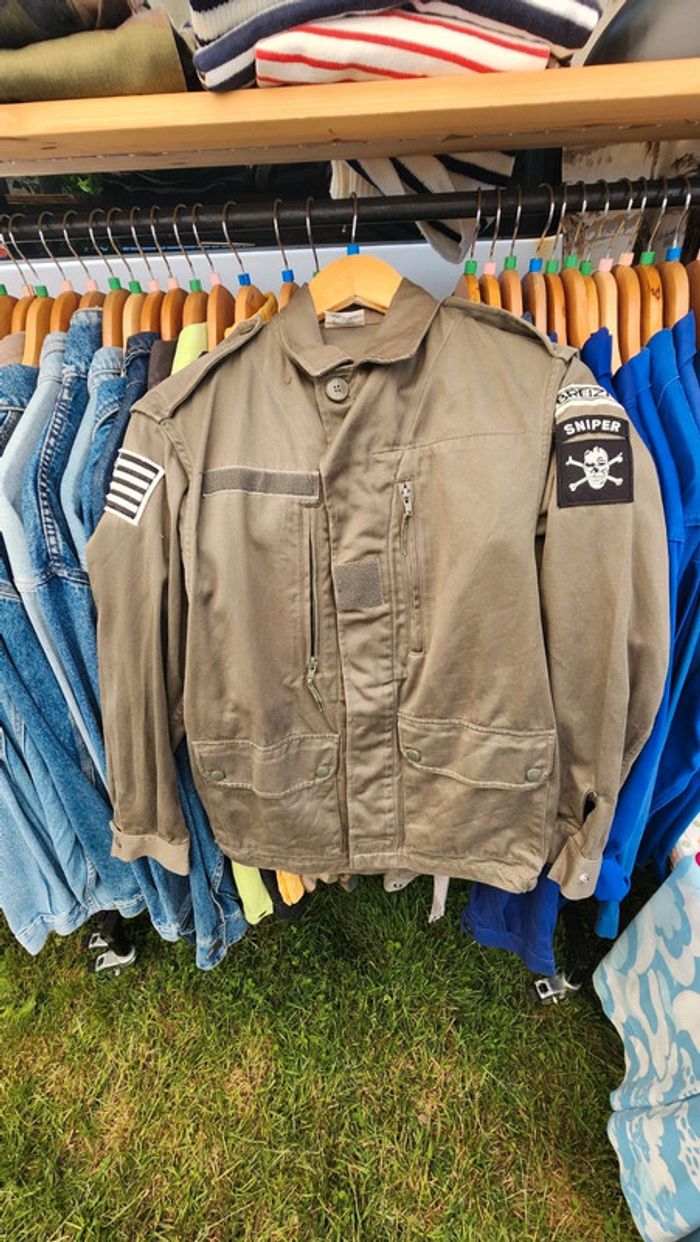 🌼 Remise sur les lots 🌼 -5% pour 2 articles -10% pour 3 articles -15% pour 4 articles -20% pour 5 articles et + www.instagram.com/kozhaevintage 🫶 Veste armée militaire taille S Homme, jusque 38-40 femme Patchs et customisation rock, Bretagne