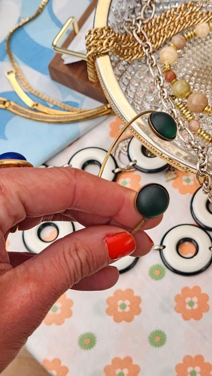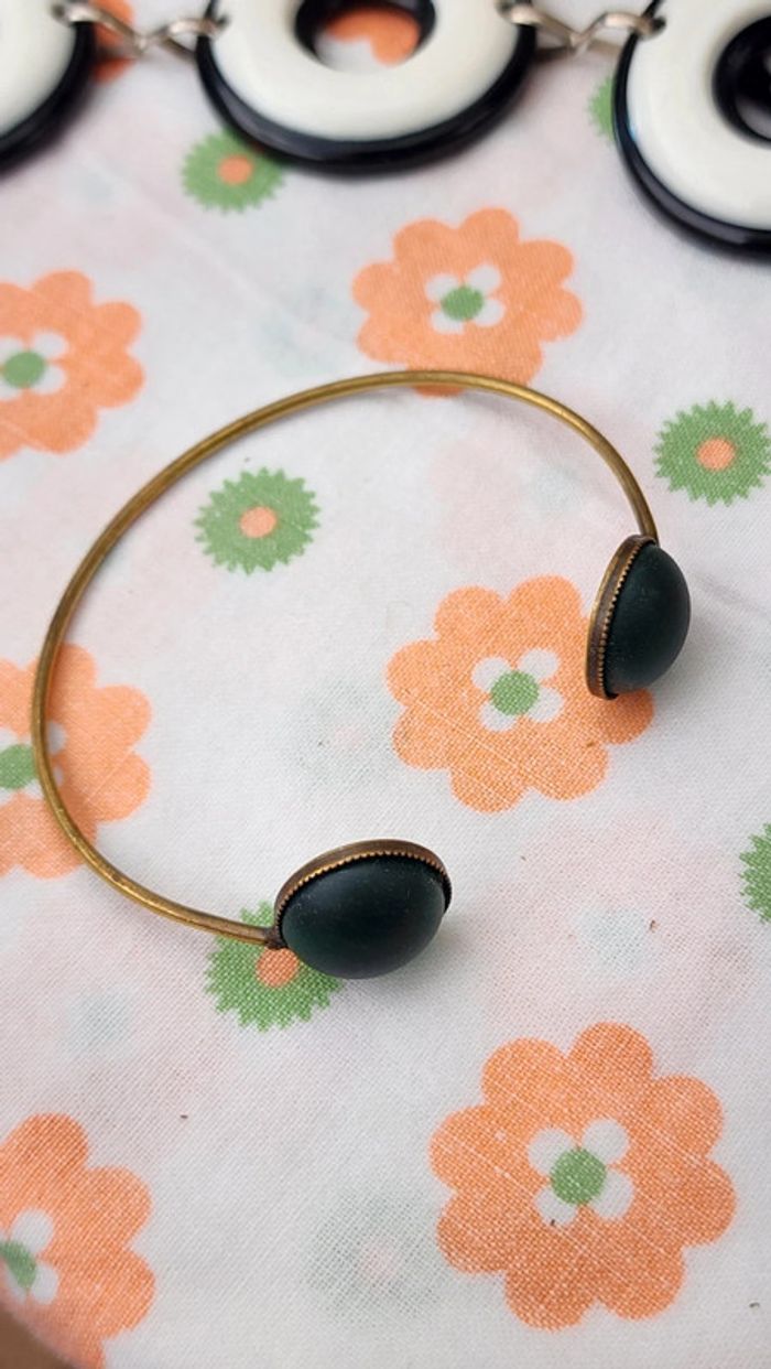 Adorable bracelet jonc vintage annees 80s doré et vert bouteille - photo numéro 2