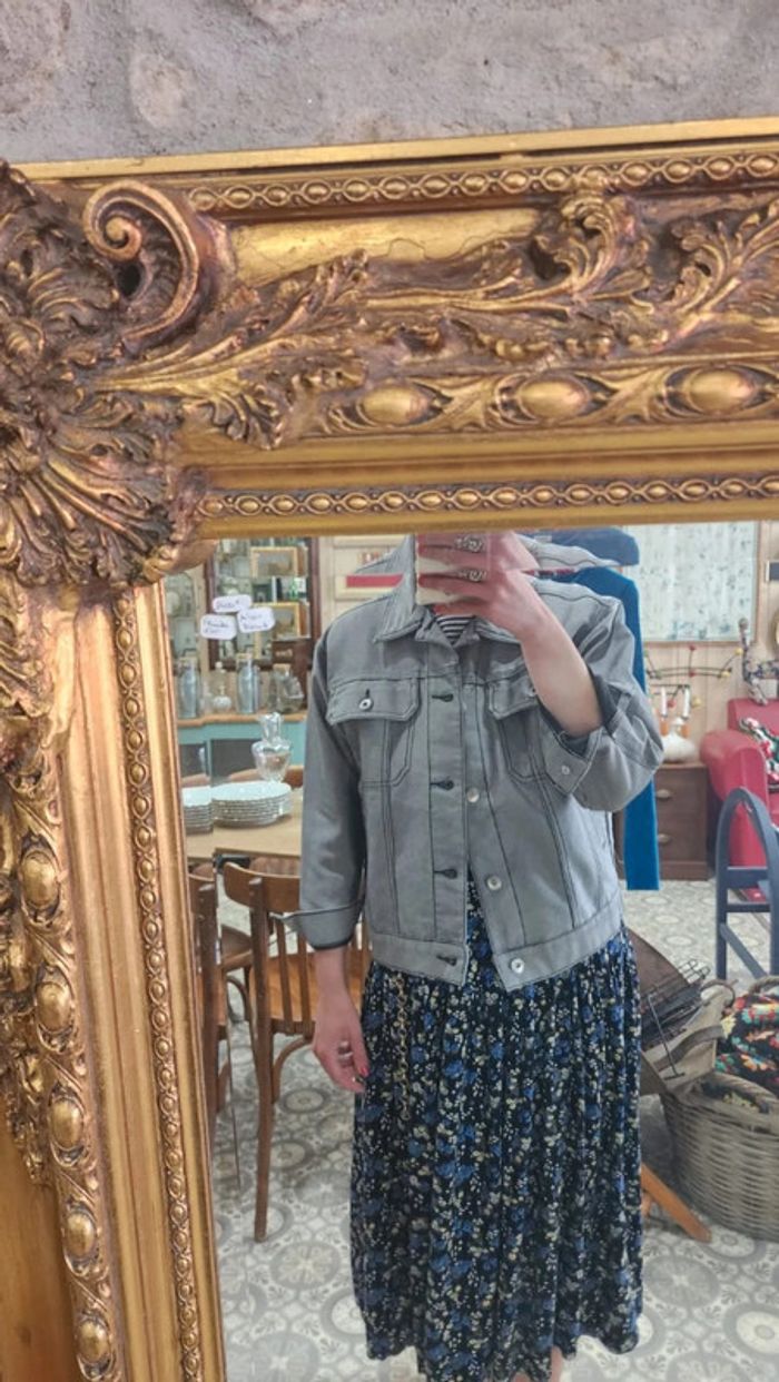 🌼 Remise sur les lots 🌼 -5% pour 2 articles -10% pour 3 articles -15% pour 4 articles -20% pour 5 articles et + www.instagram.com/kozhaevintage 🫶 Superbe veste en denim gris métallisé Taille 34 à 38 coupe moderne et belle facture