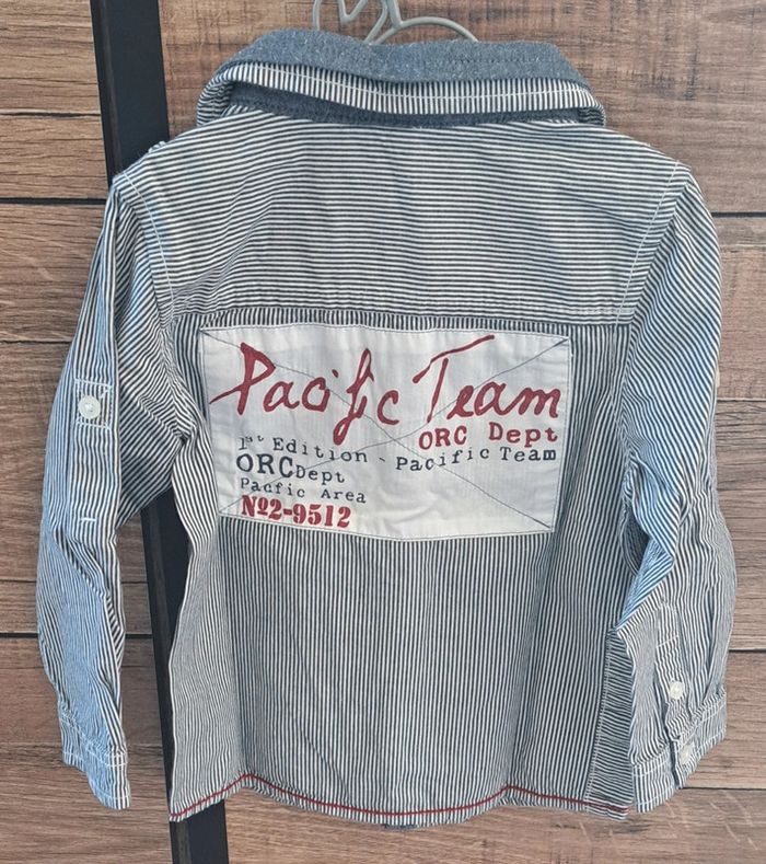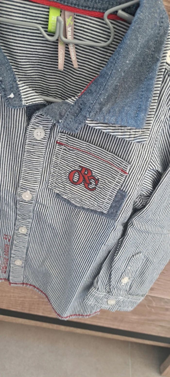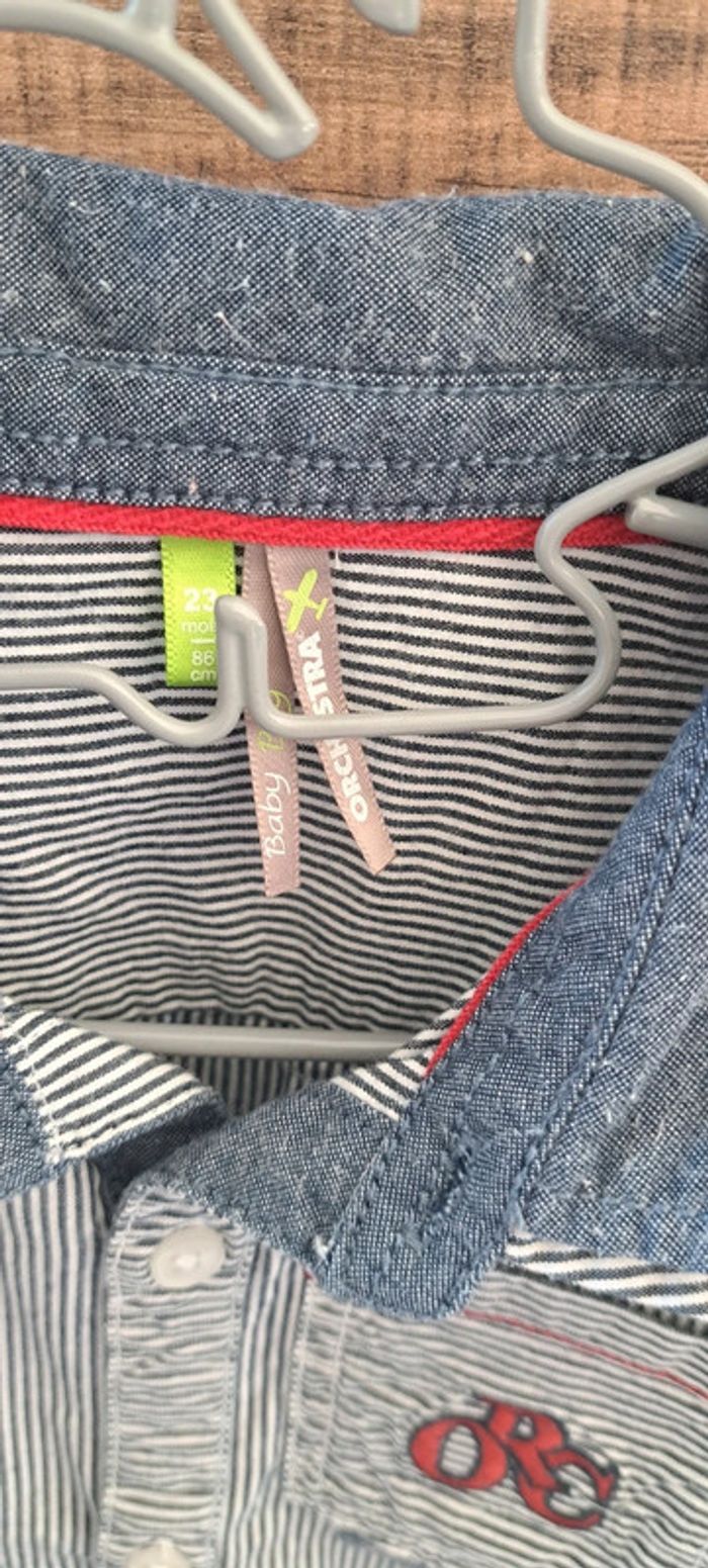 Chemise manches longues rayé bleu de la marque Orchestra en taille 23 mois. En très bon état.