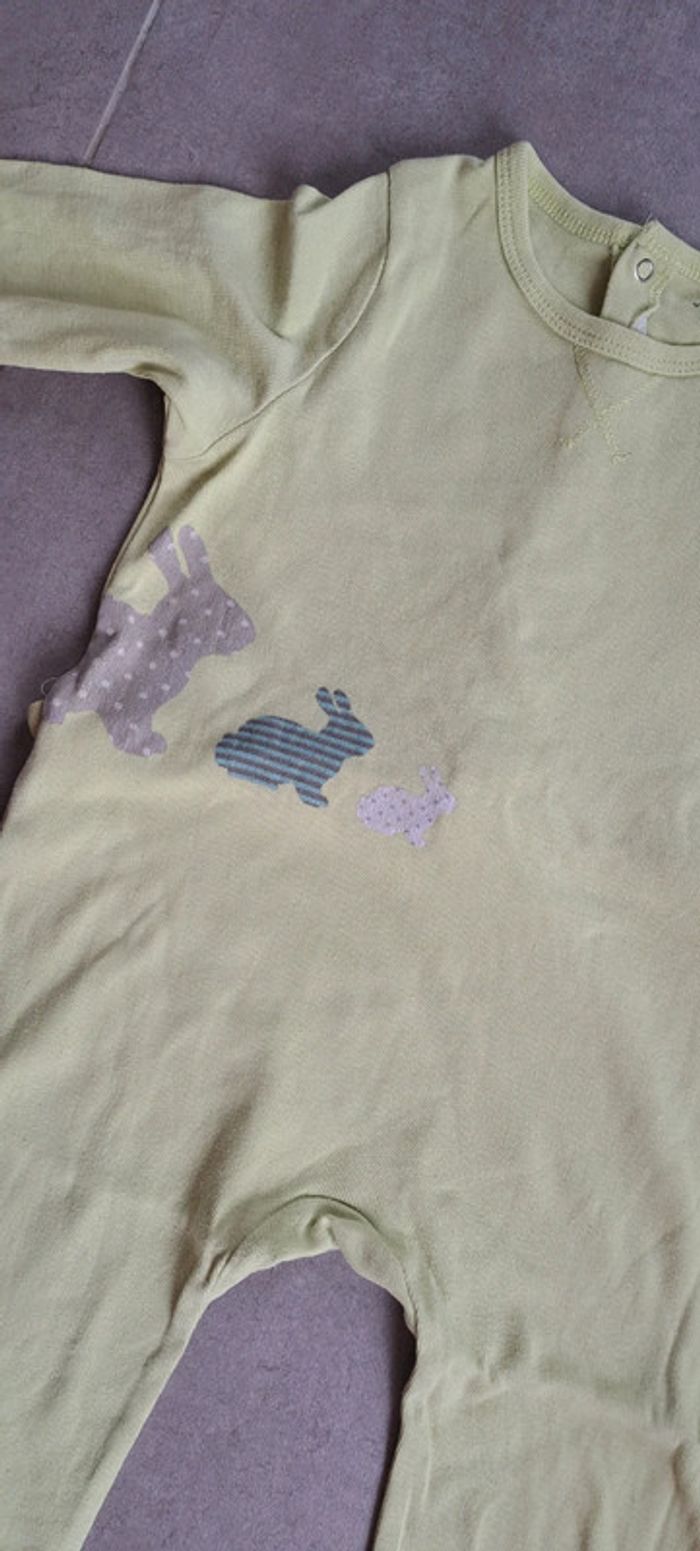 Pyjama une pièce vert avec dessin de lapin de la marque Vertbaudet en taille 23 mois. En très bon état.