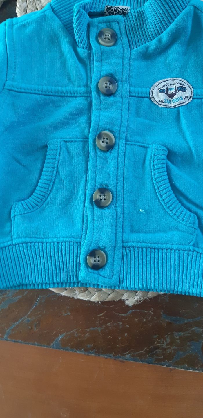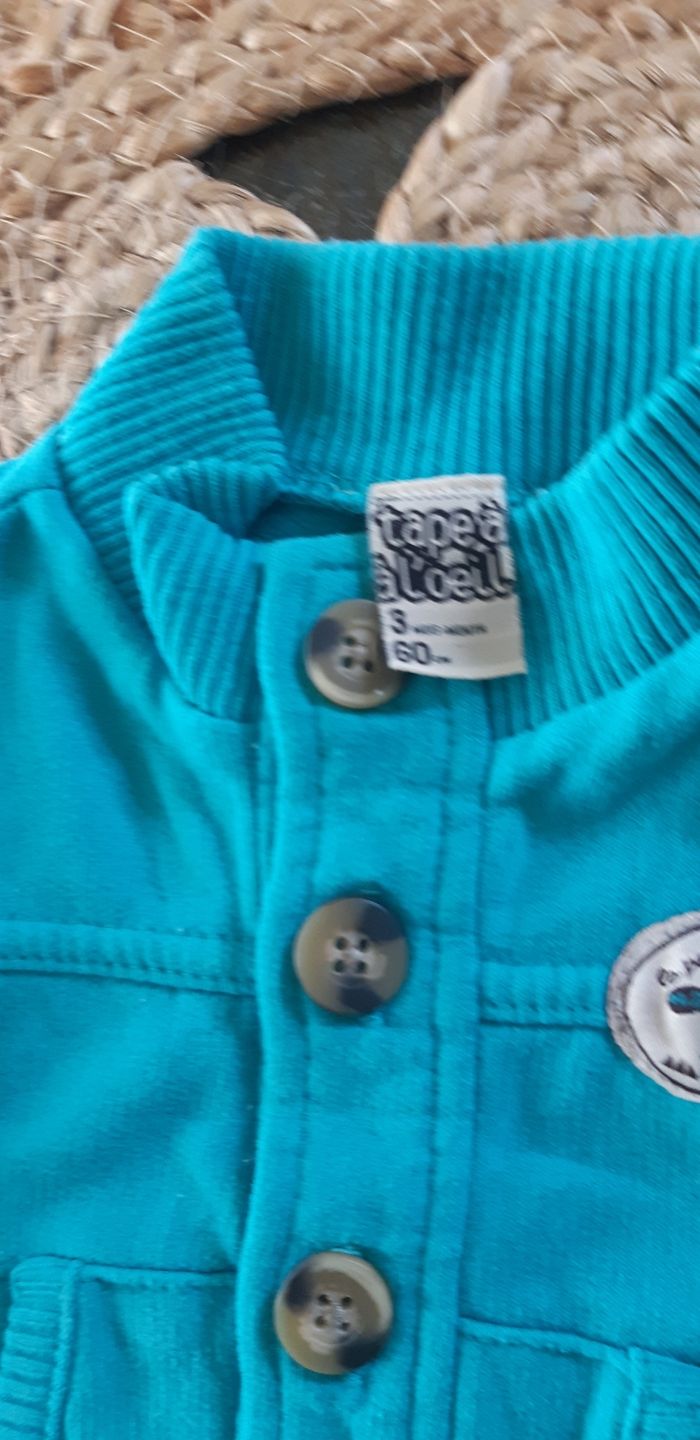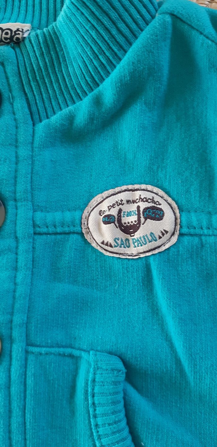 2 poches devant Fermeture avec des boutons devant Petits écussons devant Bord cotes sur les poches , poignées et bas et col