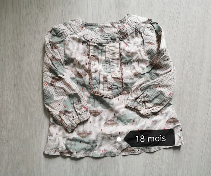 t-shirt chemise fille 18 mois Très bon état Marque kid kanai Je vend d'autres vêtements de même taille et autre hésitez pas à regarder mes autres annonce je vous ferai un prix si vous faites un lot.