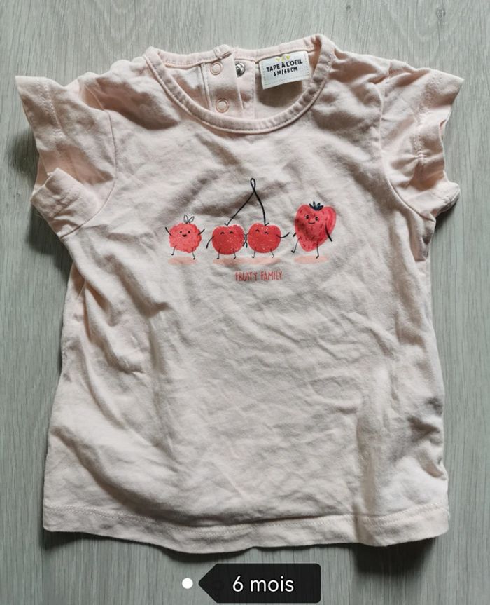 t-shirt manches courtes fille 6 mois Très bon état Marque tape à l'œil Je vend d'autres vêtements de même taille et autre hésitez pas à regarder mes autres annonce je vous ferai un prix si vous faites un lot