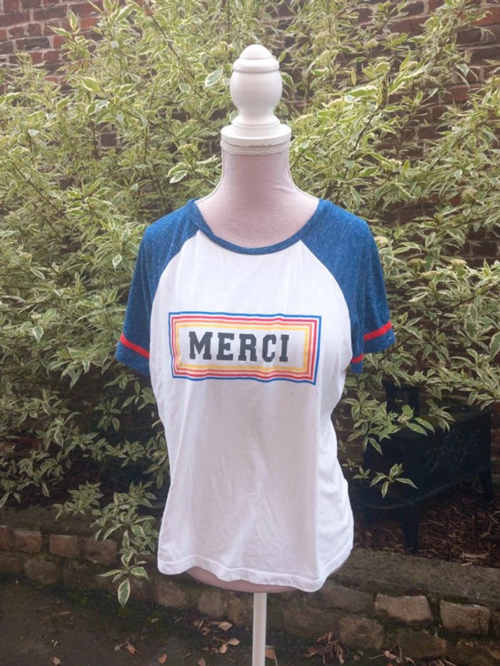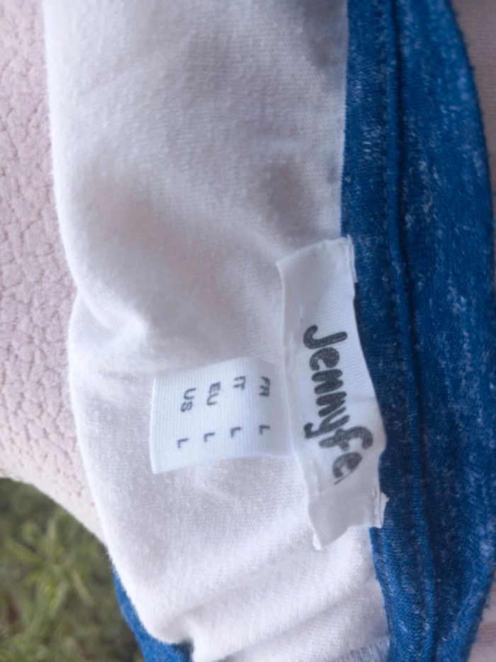 Basic. Porté mais en bon état. Le motif est imprime sur le devant. Taille ajustée. L'étiquette intérieure a été coupée. #femme_haut_T40_alixetseb