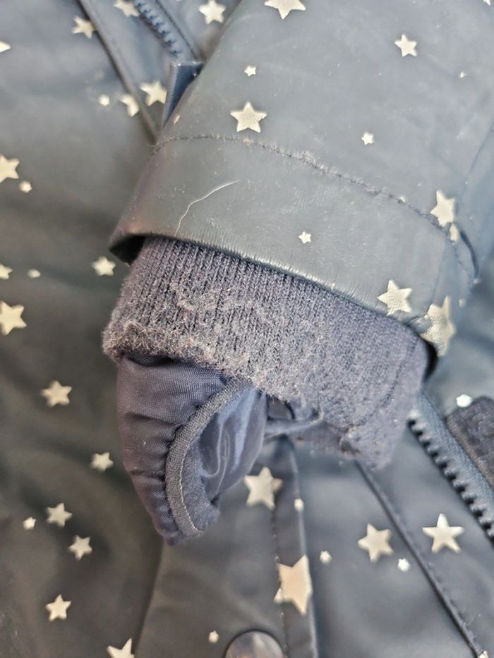 Beaucoup porté, voir photos. Manteau avec signes d'usure. Doudoune intérieur détachable en très bon état.
