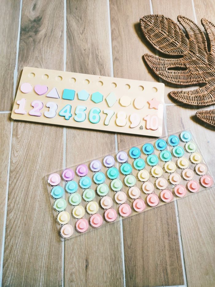 🌈Grande Planche de calculs d'apprentissage avec formes et chiffres en bois pastel JB487
