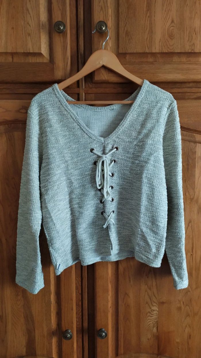 Pull Roxy Blanc/bleu marine/fils argentés Lacet dans le dos Taille M
