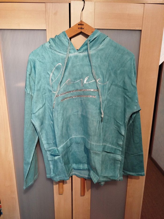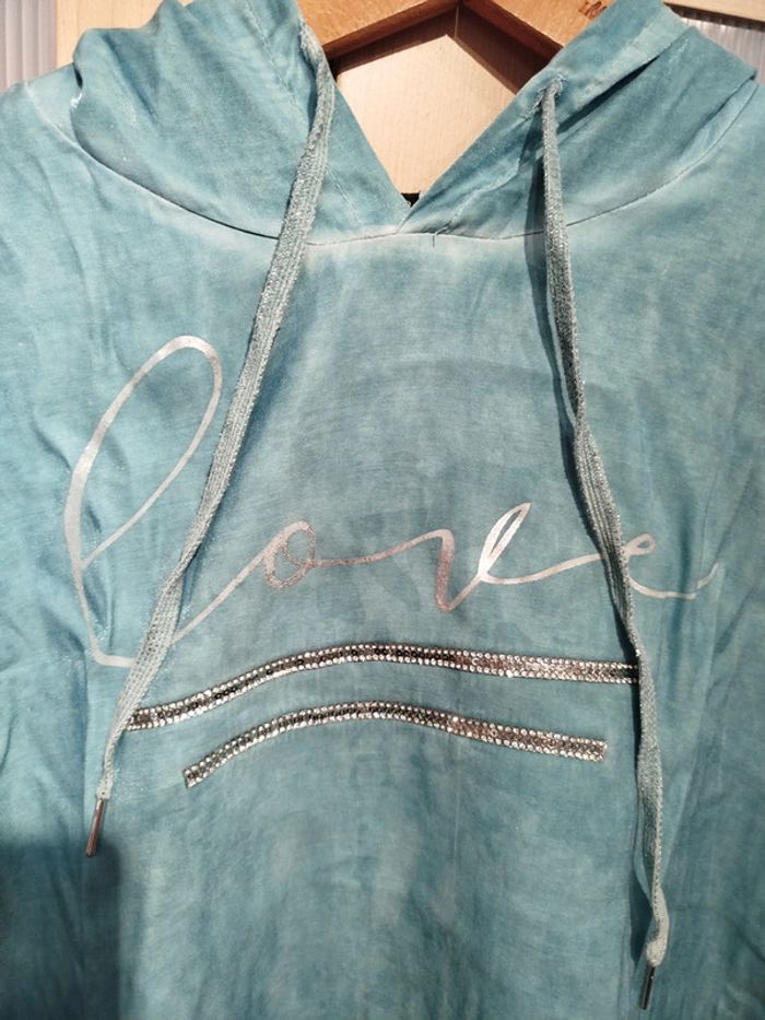 Couleur bleu-vert effet irisé Inscription "love" argenté TU correspond à un M