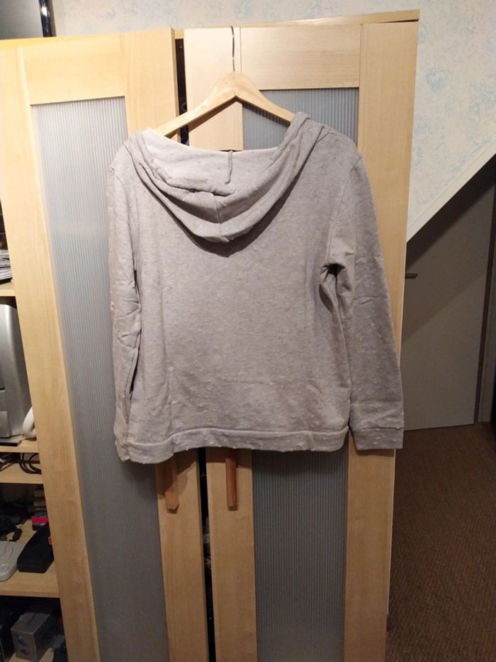 Sweat gris à capuche Effet troué (photo 3) Taille S/M