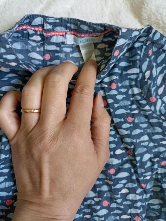 Blouse manches longues motifs poissons et jean orange taille réglable #6moisfillejessdagnas