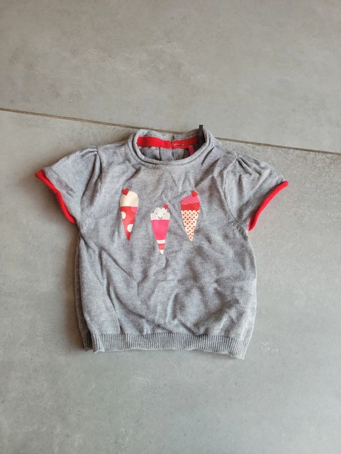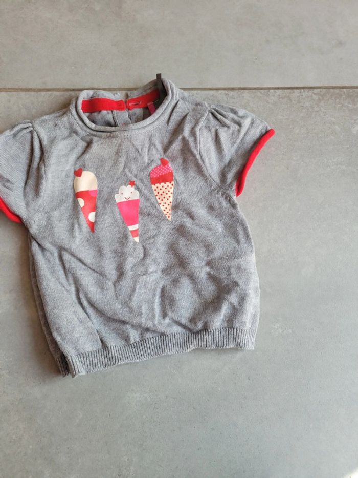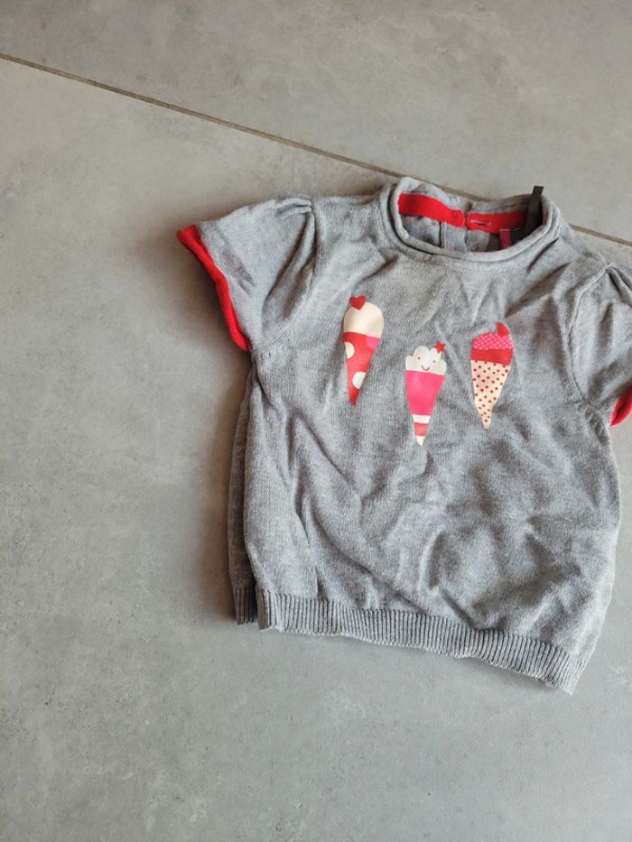 T shirt manche court effet petit pull bébé fille 71 cm - photo numéro 1