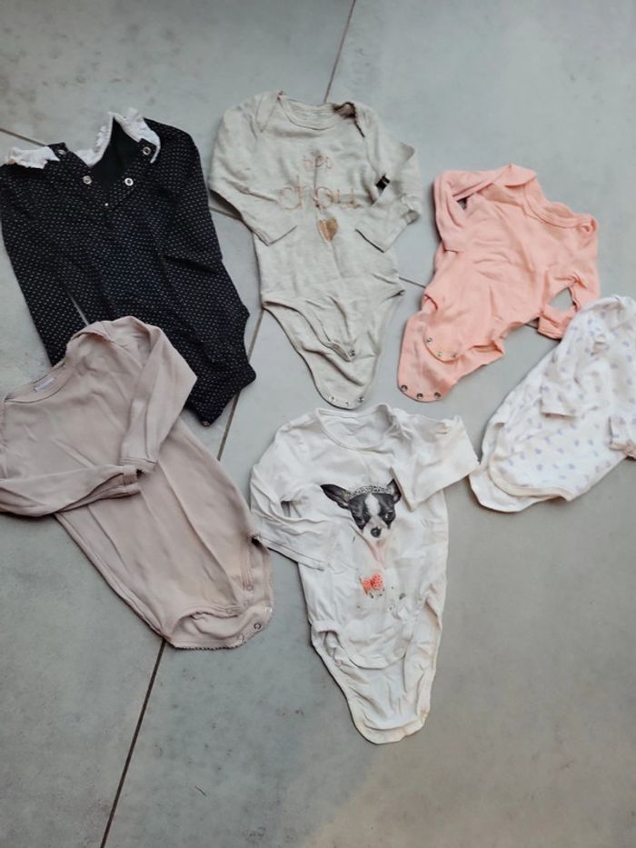 Lot de 6 body bébé 12 mois environ 74cm manche longue fille - photo numéro 1