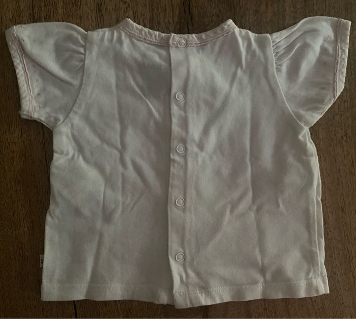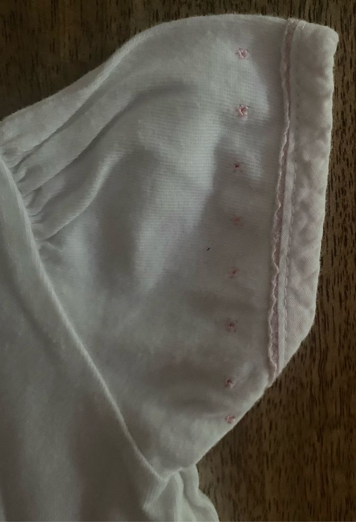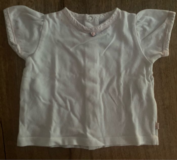 T-shirt sans tache Broderie en haut du col et sur les manche voire photo Ouverture du t-shirt avec 5 pressions dans le dos. 100% coton