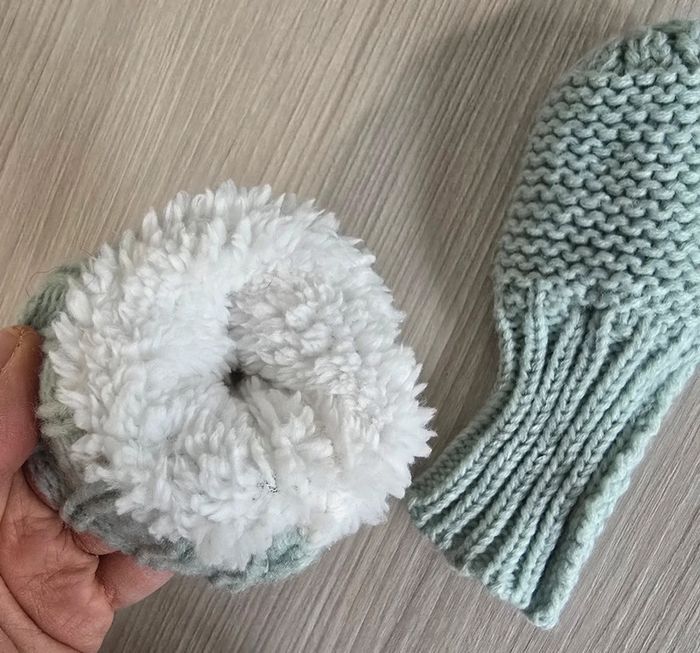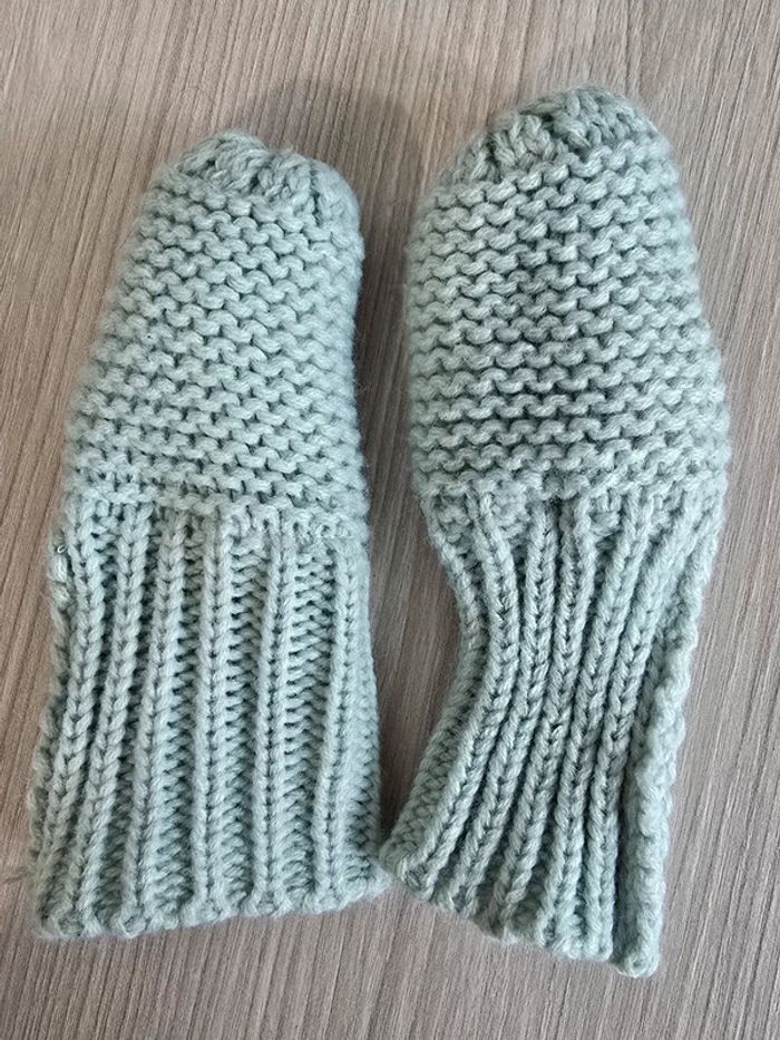 Moufles très chaudes pour bébé. Doublées en polaire tout doux, extérieur laine couleur menthe/bleu clair. Neuves . Taille 1/2 ans Peuvent se porter pliées ou dépliées pour qu'elles tiennent parfaitement sous le manteau