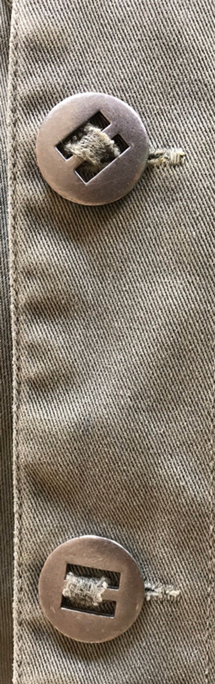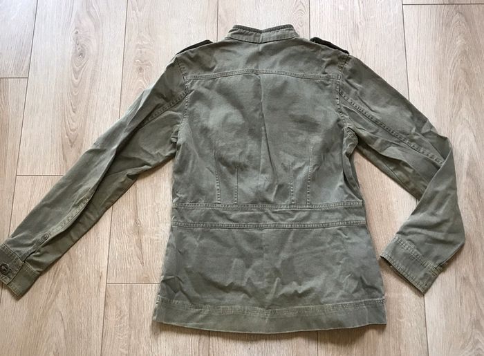 Veste kaki avec un petit effet délavé En très bon état (les passants des boutons sont un peu usés, voir dernière photo) Taille 38