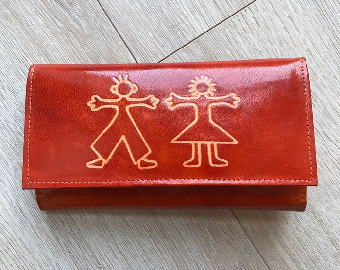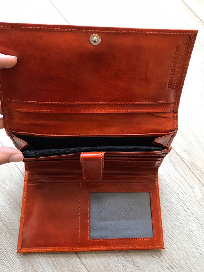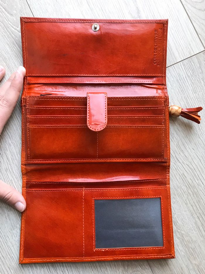 Porte feuille en cuir véritable Couleur orange Très bon état Cuir entretenu avec un lait nourrissant spécial #portefeuille #cuir